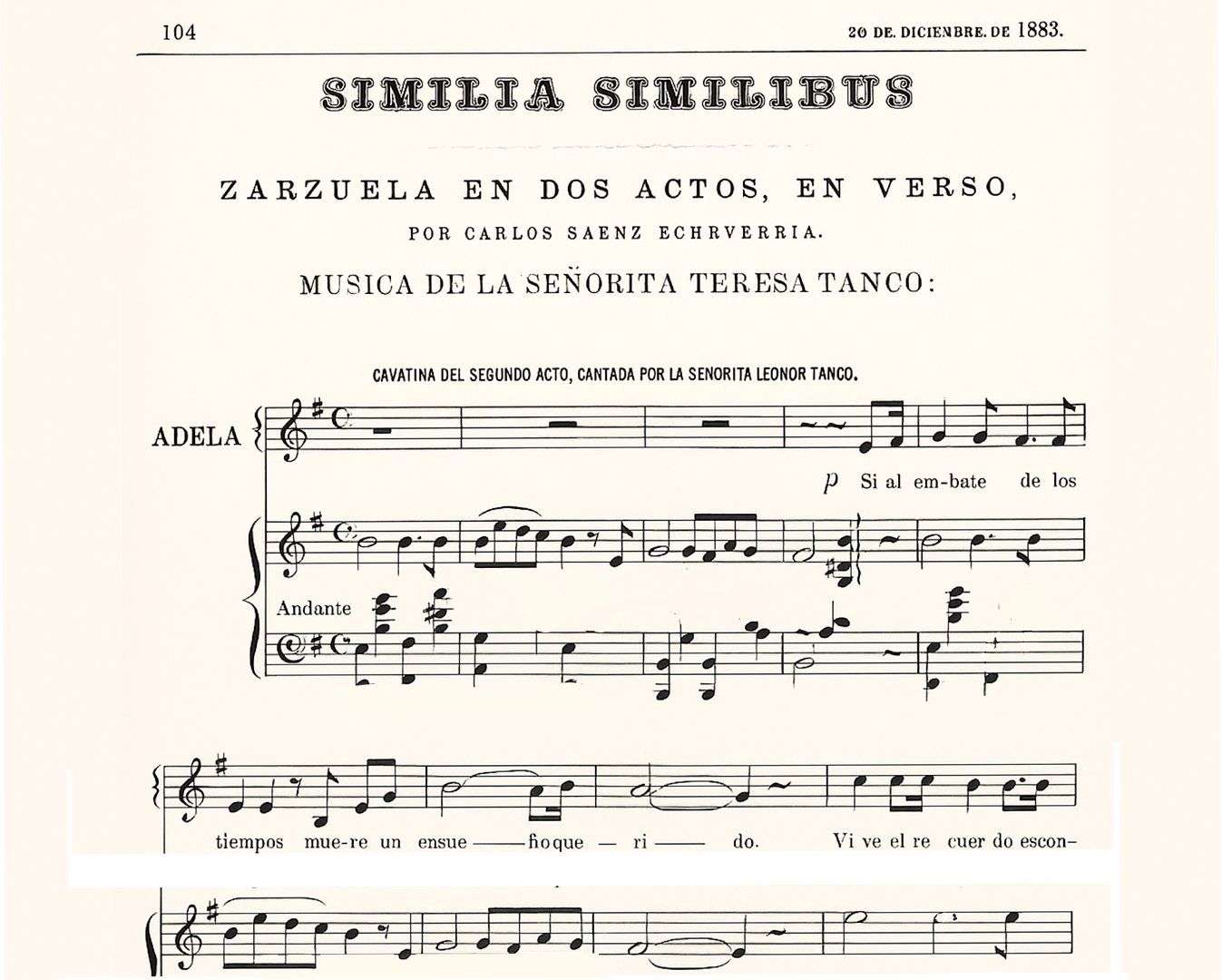 Home Mujeres en el espacio musical colombiano en el siglo XIX Siglo XIX: El álbum musical de Ana y Cristina Echeverría Similia Similibus: Zarzuela en dos actos y en verso